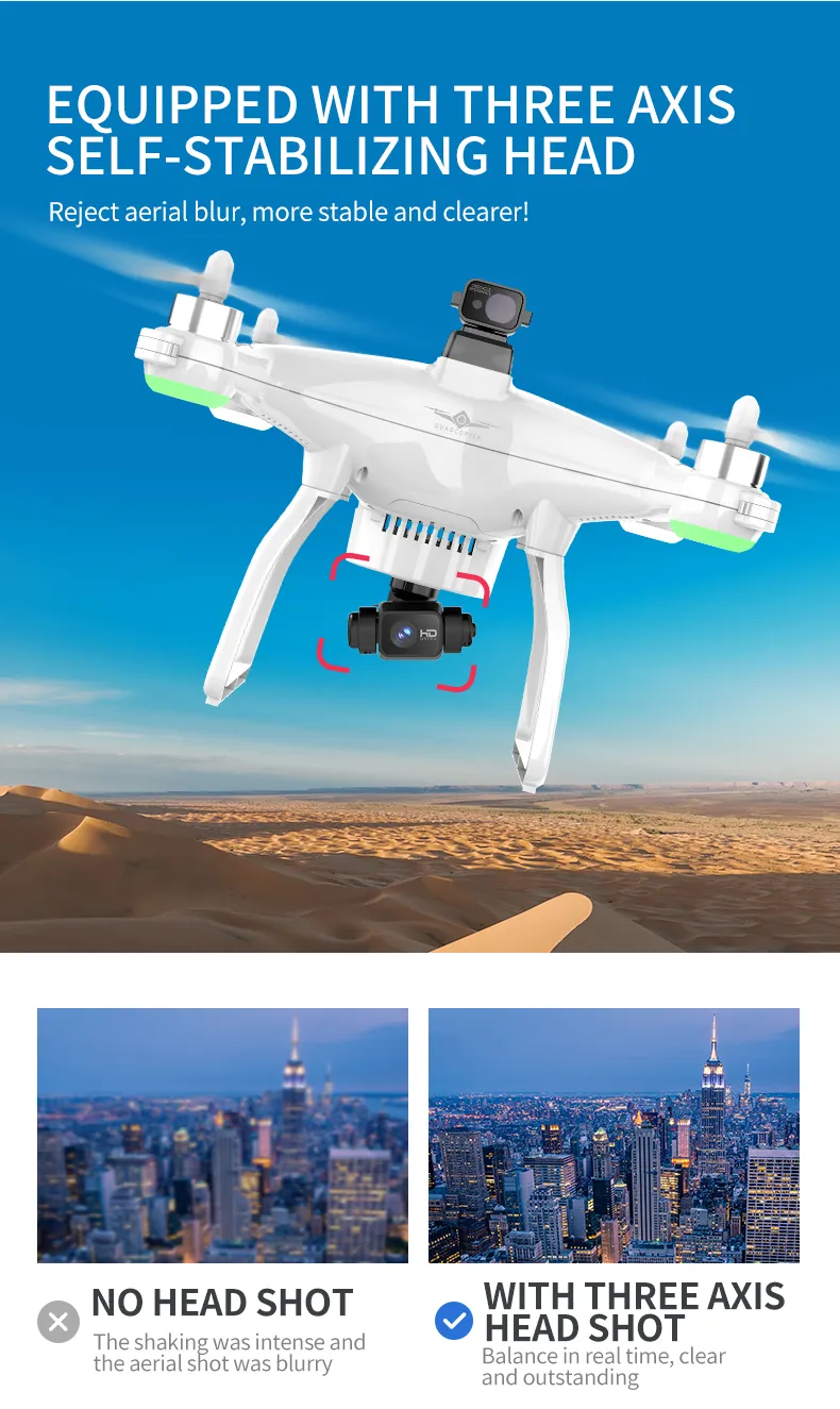 The 4K HD camera captures stunning images and crystal-clear videos with vibrant detail. Combined with a three-axis mechanical gimbal, it ensures stable footage, even during fast movements or in windy conditions. The dual GPS system enhances flight accuracy, enabling automated flight modes like waypoints, follow-me, and return-to-home, providing seamless control and ease of use.