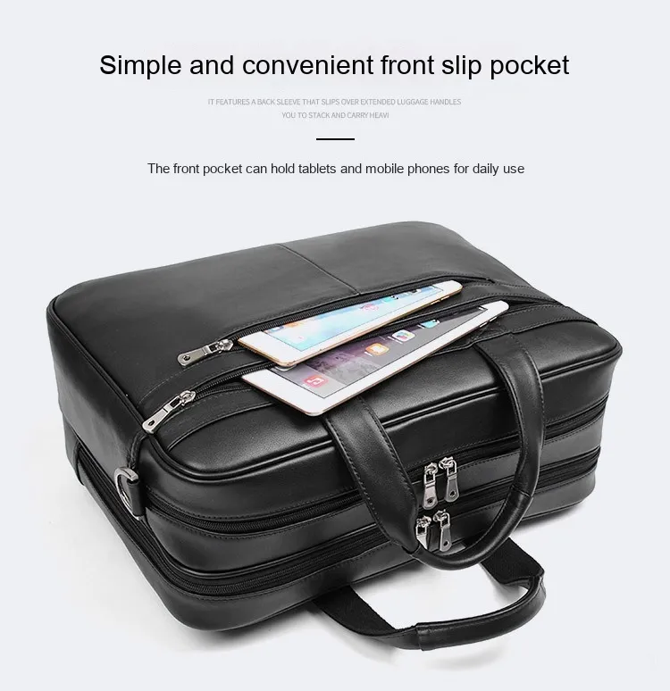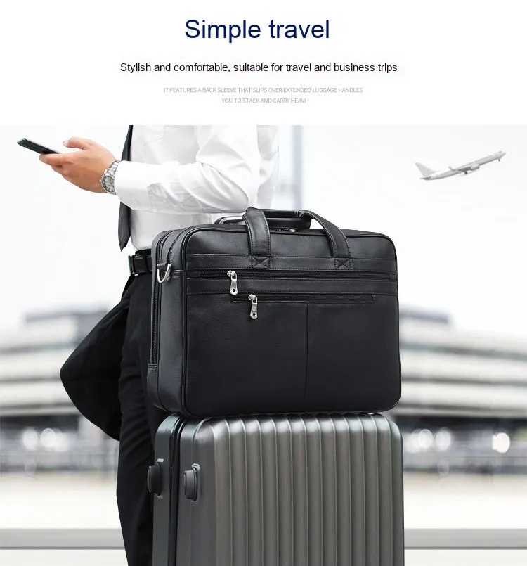 business travel.The Men's Real-Leather Bag features a spacious main compartment that accommodates laptops and notebooks up to 15 inches,