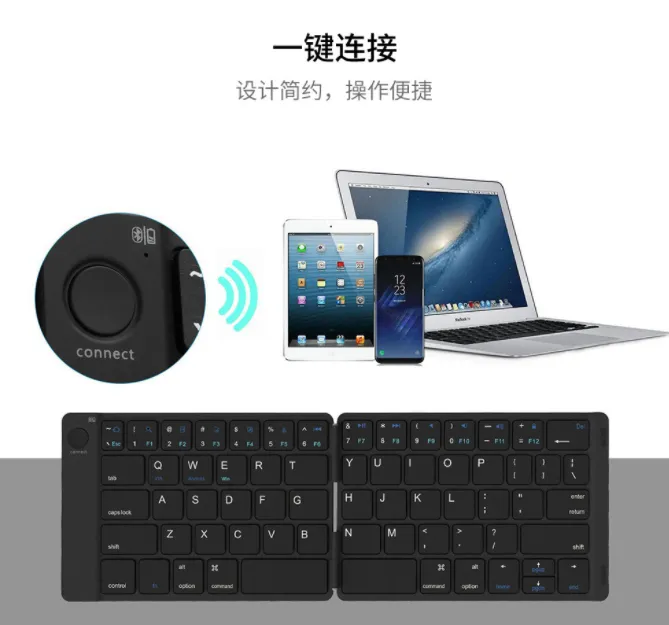 The keyboard folds into a small, portable size, making it easy to carry in your bag or briefcase. When opened, it provides a full keyboard experience, ideal for typing on the go without compromising on comfort or usability.
