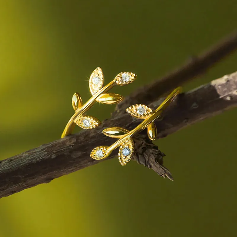 Leaves Leaves Ring Opening Adjustable