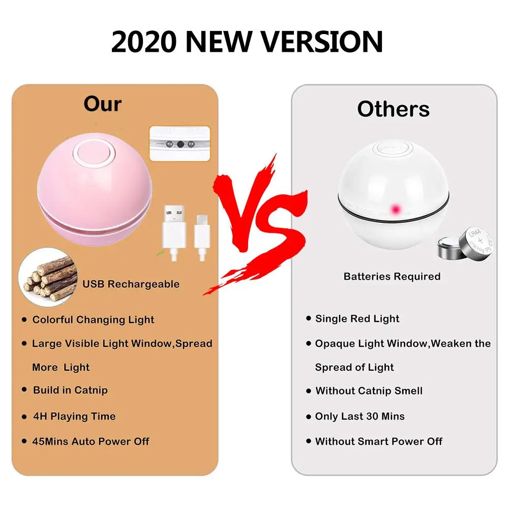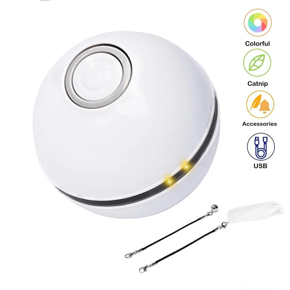 3. 360° rotating ball: After power on, the interactive cat toy will start to rotate 360° and color LED indicators. If it collides with
