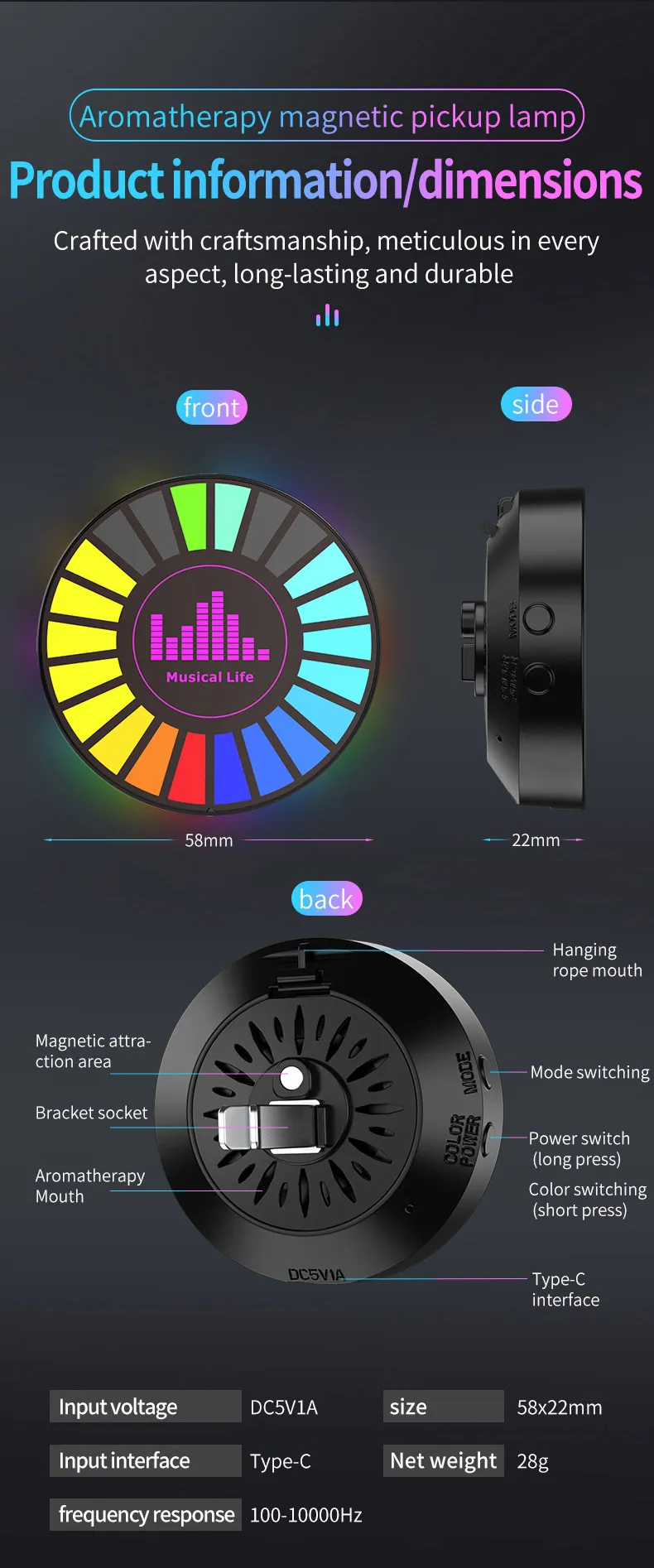 Intelligent sound pickup microphone captures music beats and ambient sounds for dynamic, beat-driven lighting effects.