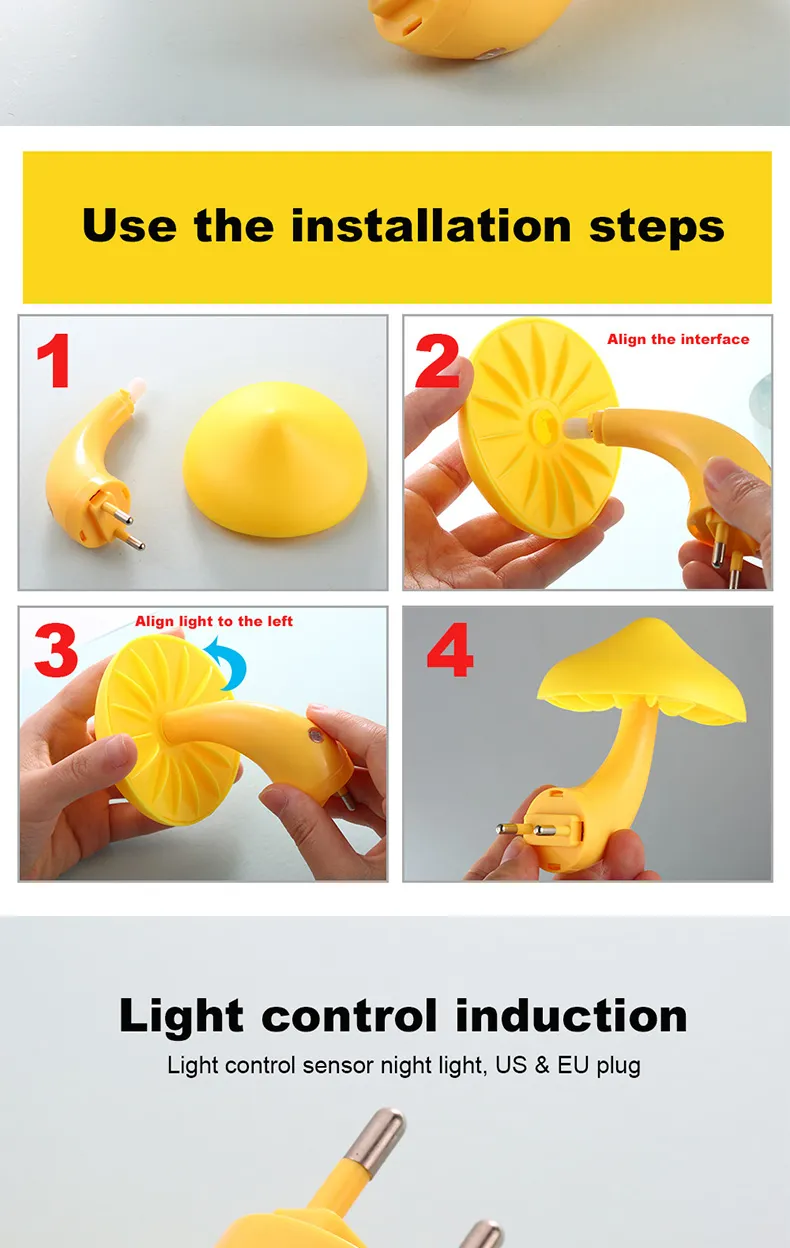 2. Light sensor-led night light, connecting with the wall socket, like the picture, it will automatically light up when your room is dark, and black out when it's bright.