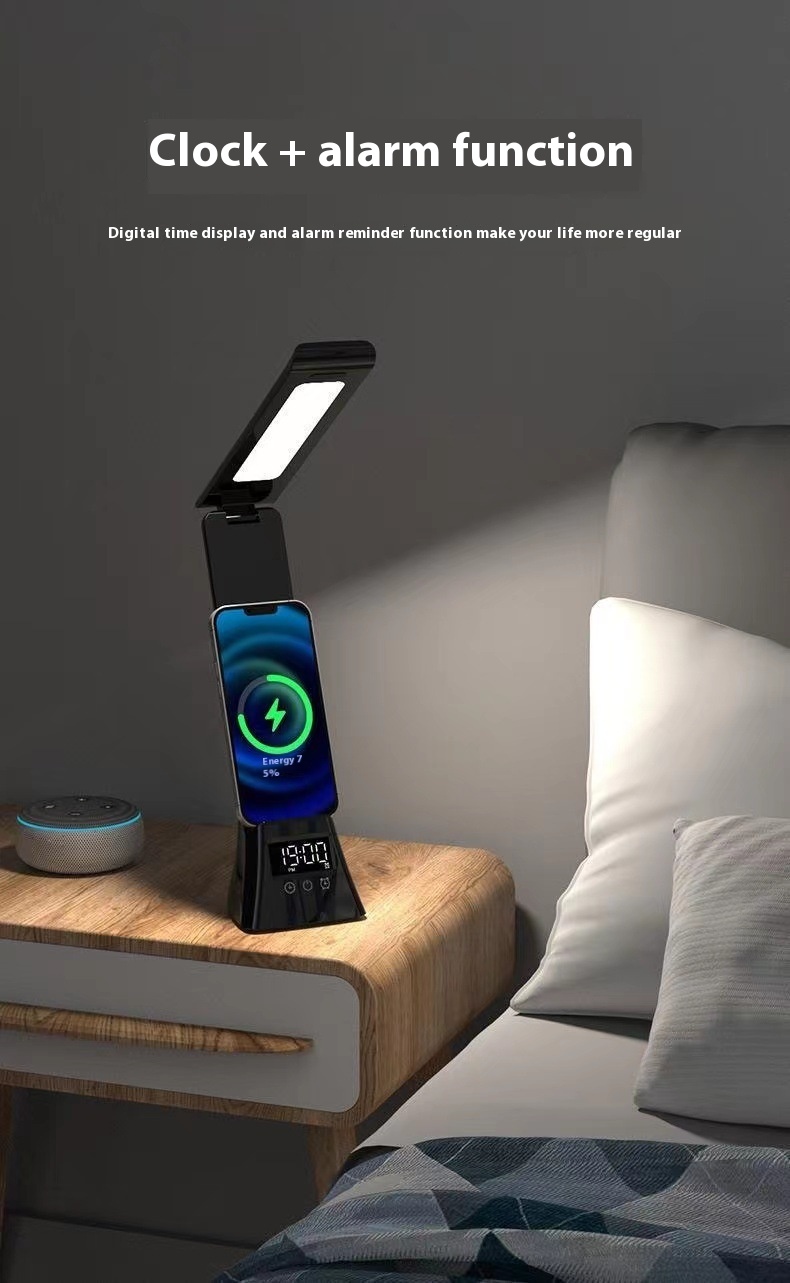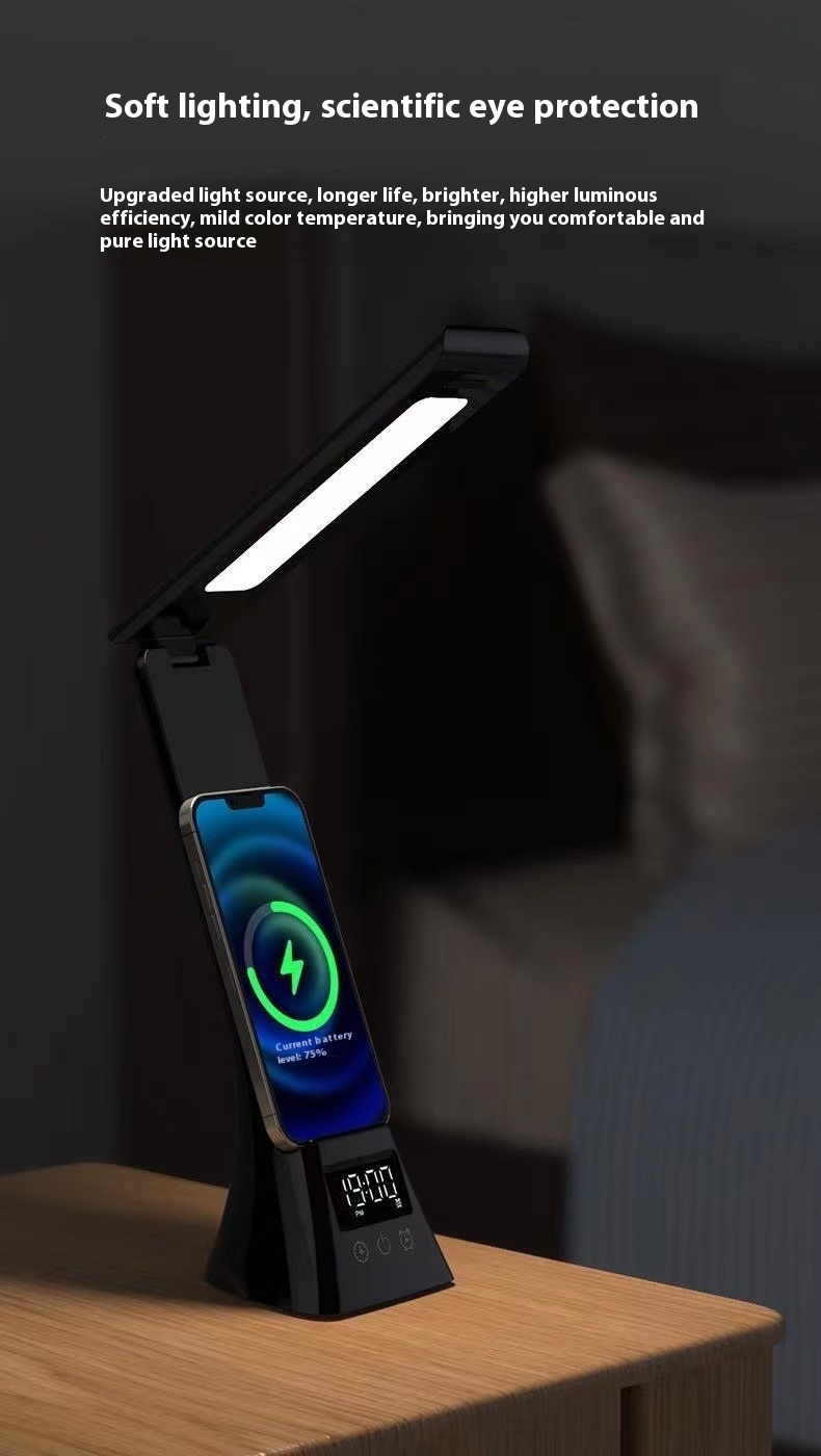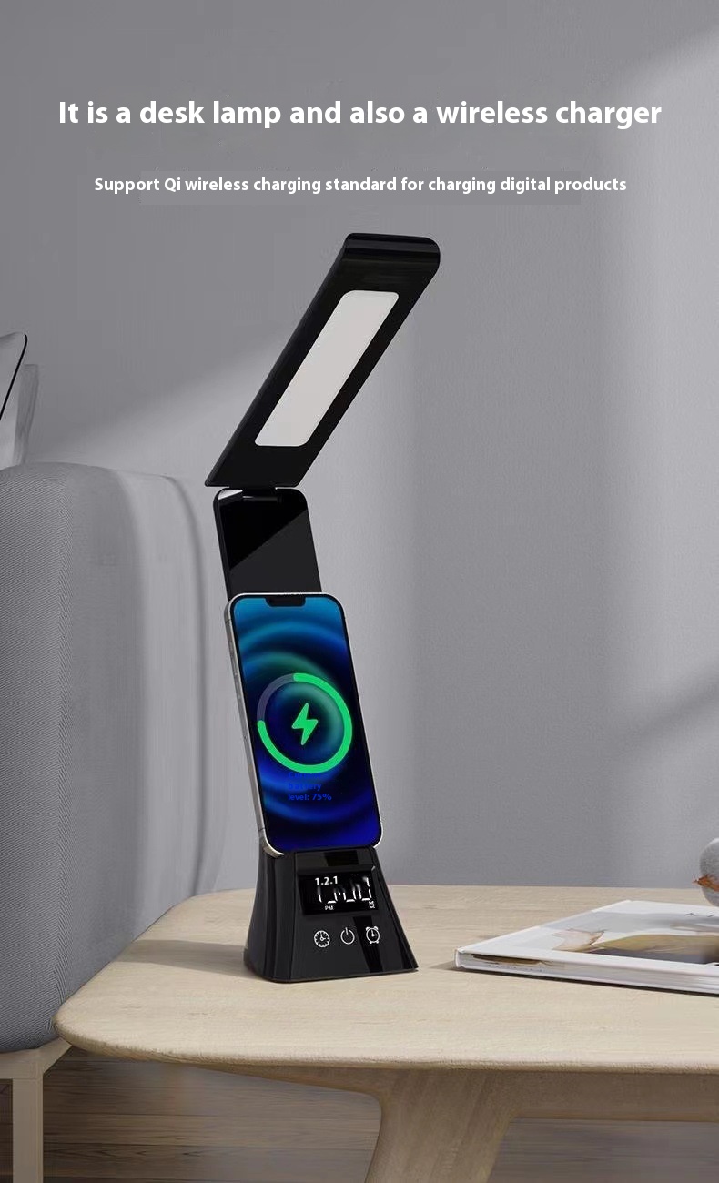 Illuminate your workspace with our LED Smart Desk Lamp featuring a wireless fast charger. This modern and efficient desk lamp provides bright lighting and quick charging for your devices, combining functionality and convenience.