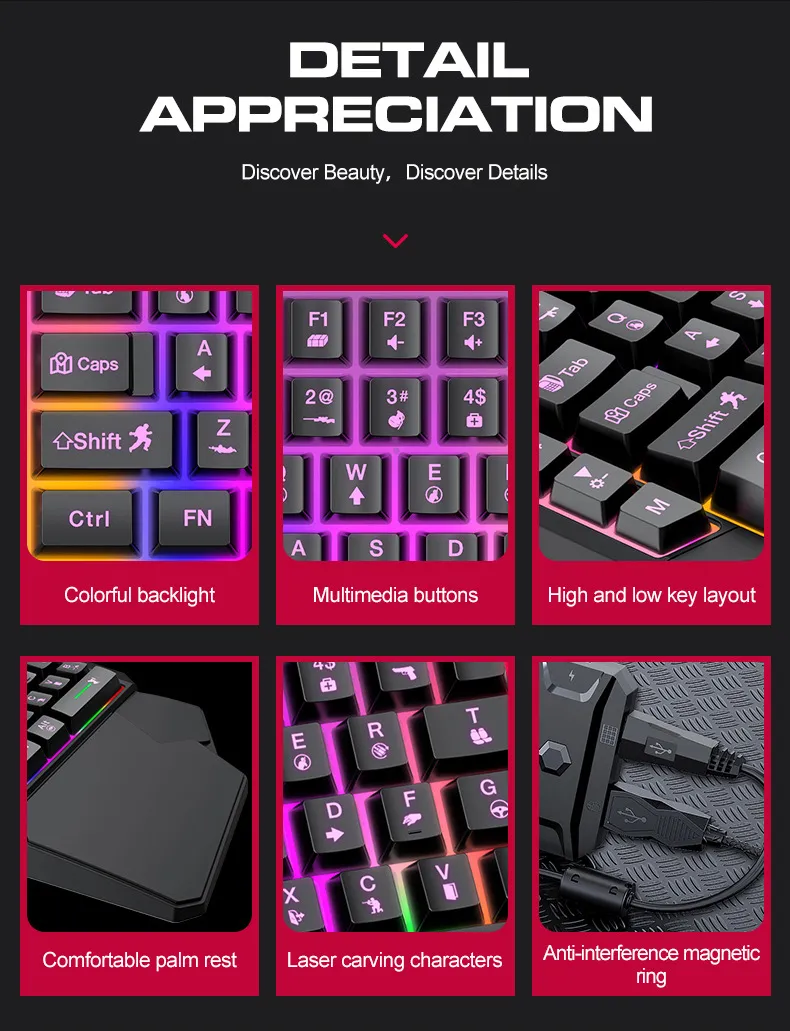 Lei Lang TF900 Single Hand Mouse Keyboard Suit