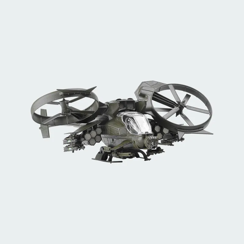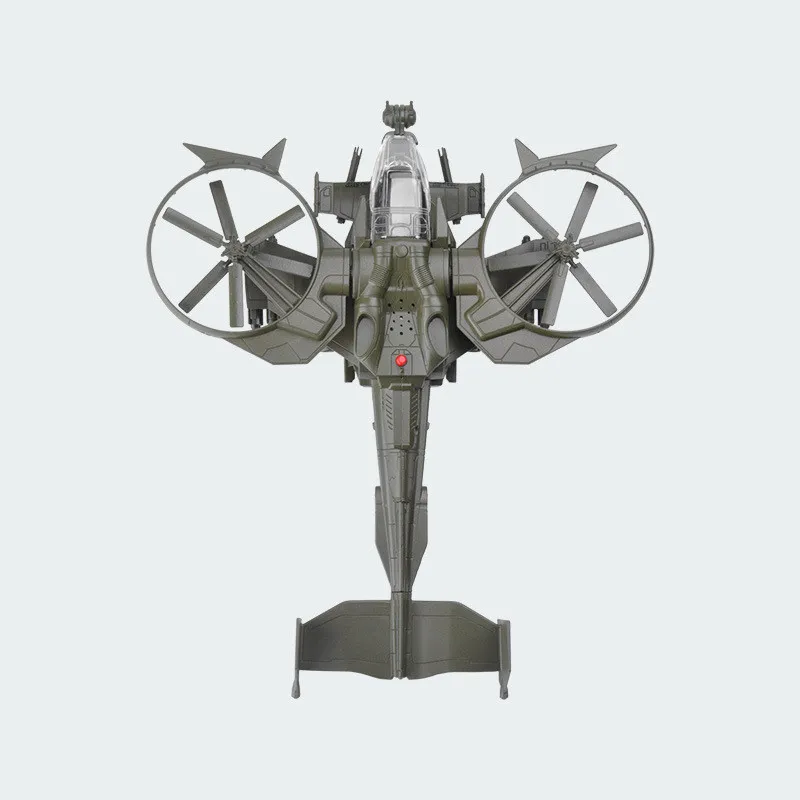 reduction. The main body of the fuselage is made of zinc alloy, the missiles on both sides can be pressed and launched, and the rotor