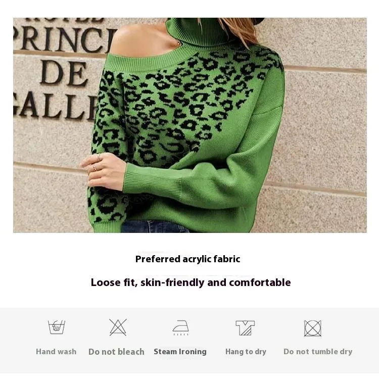 Leopard Print Stud For Autumn And Winter Women's Long-sleeved Sweater Shoulder-baring Sweater