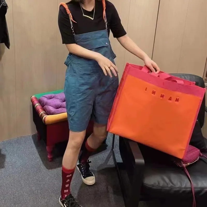 Letter Contrast Canvas Tote Shoulder Tote Bag