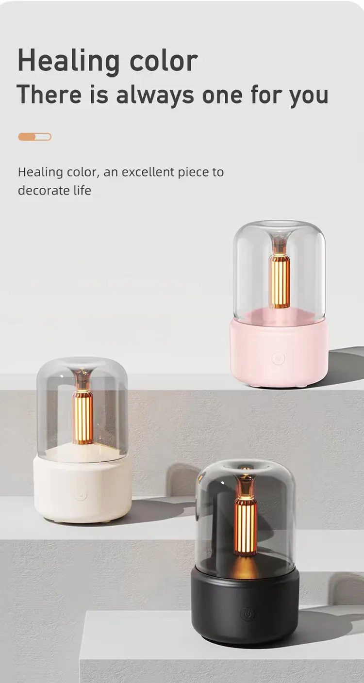 With its contemporary design, the Light Humidifier Candlelight Aroma Diffuser complements any decor style. Its elegant appearance makes it a stylish addition to your home, whether placed on a bedside table, desk, or living room shelf.