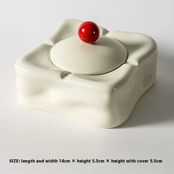 Color classification: Square glacier ashtray milk white + milk white cover red beads, square glacier ashtray milk white + milk white cover