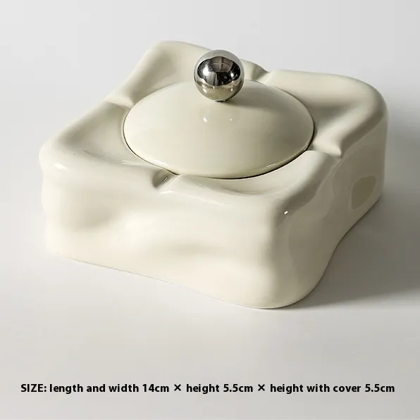 Light Luxury Ceramic Ashtray with Lid – Elegance for Your Living Room