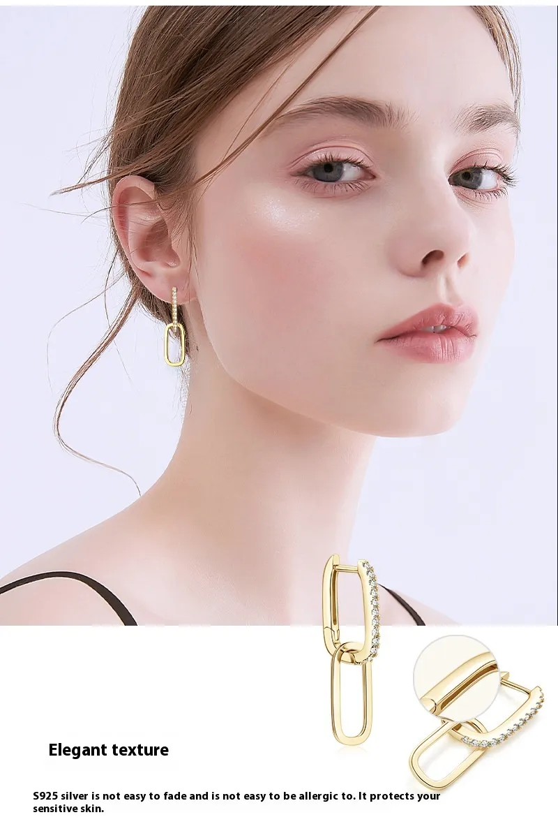 The double ring design of these earrings is a testament to modern elegance. The rings are delicately crafted from S925 sterling silver, ensuring both durability and a sleek appearance. The design creates an eye-catching effect as the two rings intertwine, adding a touch of sophistication to your overall look. This versatile design allows these earrings to seamlessly transition from casual to formal occasions, making them the perfect accessory for any event.
