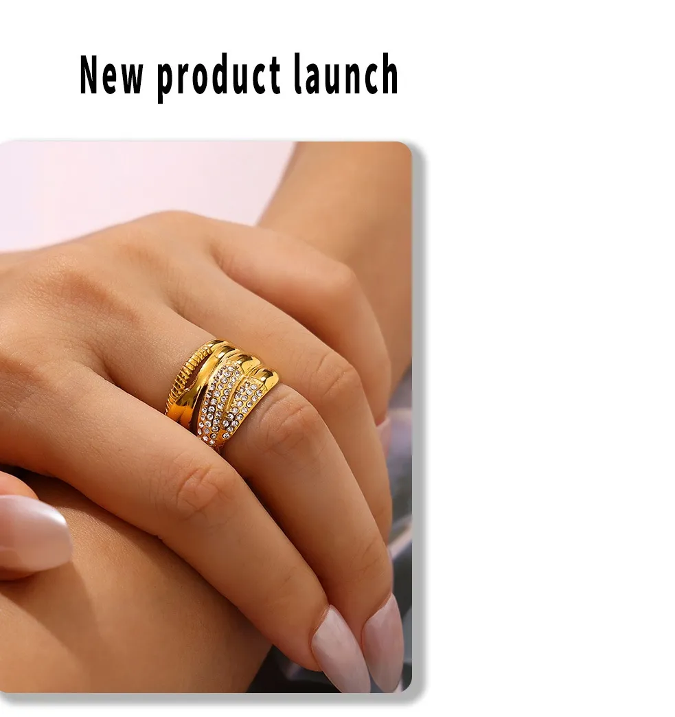 Light Luxury Fashionable New Cross Woven With Multiple Row Diamond Ring