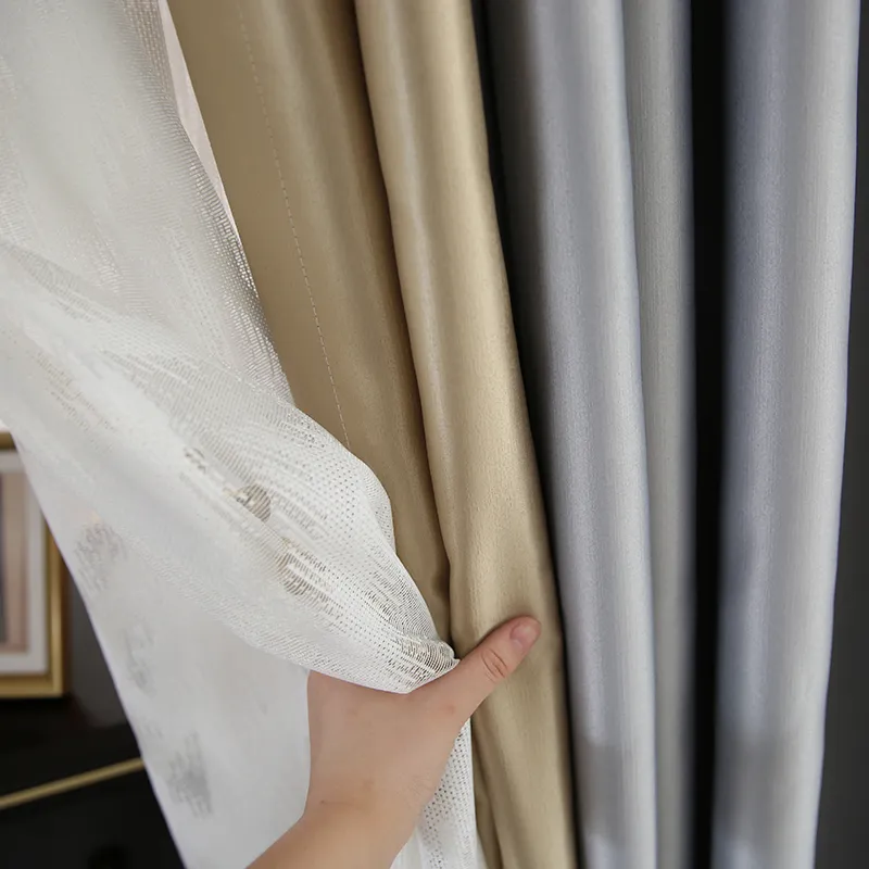 Transform your living space with the Light Luxury High-End Modern Minimalist Blackout Curtain, designed to combine elegance with functionality. Perfect for both living rooms and bedrooms, this curtain not only enhances your decor but also provides the ultimate light-blocking solution for a serene and restful environment. Crafted with meticulous attention to detail, it embodies a modern minimalist aesthetic that complements any interior style.