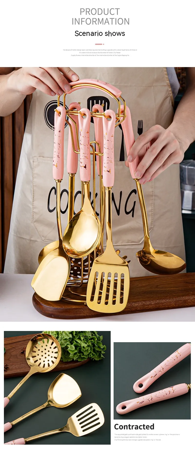 Light Luxury Kitchenware Cooking Seven-piece Ceramic Handle Stainless Steel Kitchen Supplies