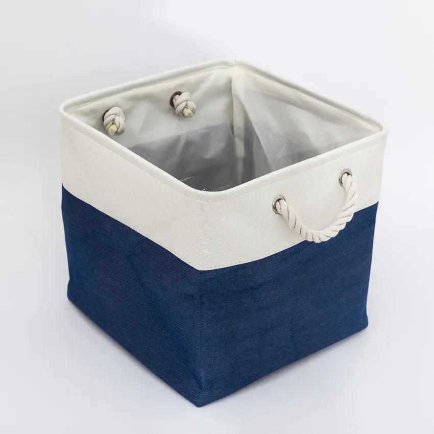 Linen Stitching Foldable Storage Box With Cotton Rope Handle Toy Storage Basket Daily Necessities Organizing Basket