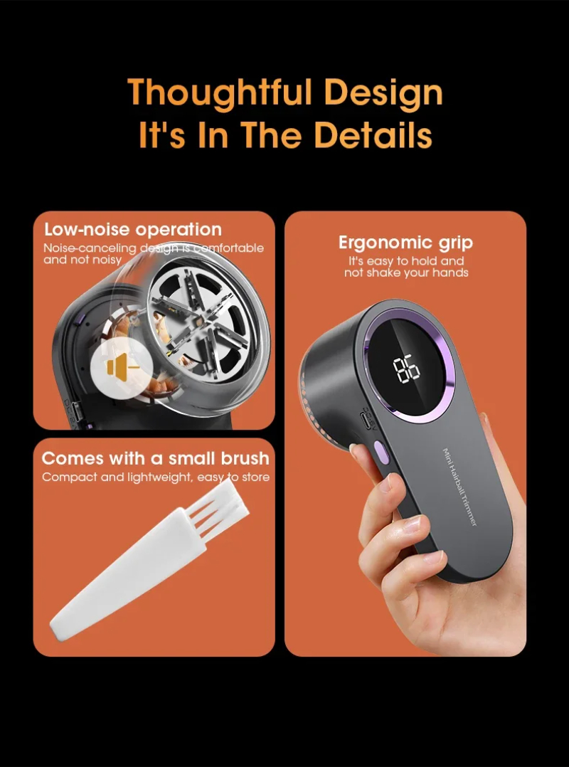 1. Stainless steel six-leaf cutter head, strong power, quickly and efficiently removes hairballs on clothes without hurting clothes, making your clothes smooth and tidy.