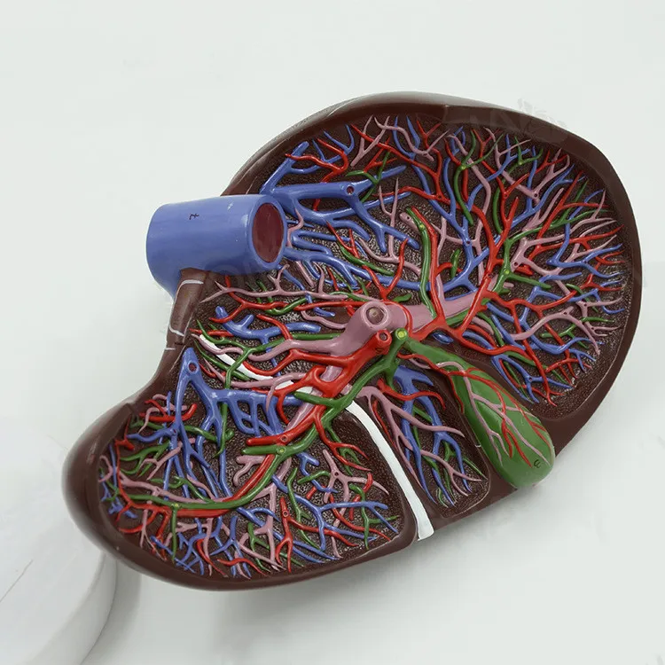 The model often features a cross-sectional design that allows users to see the inner structure of the liver, including lobular and vascular details. This cross-sectional view offers insight into how the hepatic lobes connect and how blood flows within the liver, supporting a better understanding of complex processes such as filtration, bile production, and metabolism. This feature makes the model especially valuable for advanced studies in hepatology and internal medicine.