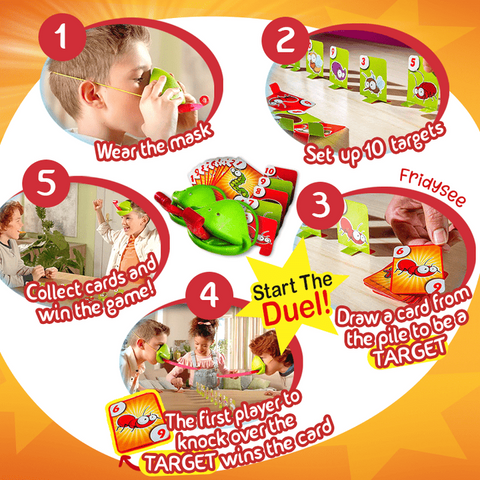 A unique family-friendly game that promotes the perfect combination of endless fun, motor skills, and a touch of silliness! The mask extended an incredibly long tongue once blown just like a real chameleon which is perfect for knocking down the upright cards. This GiftTree NZ Lizard Tictac Tongue starts when a game card has been drawn and the two players need to race in knocking down the correct insect card (scorer/target card). The chameleon with the most bugs points total 'catches’ the fastest crowned the winner of the cold-blooded war. Making it an enjoyable head-to-head skill match that would surely turn your boring game night into a thrilling, unforgettable scene.