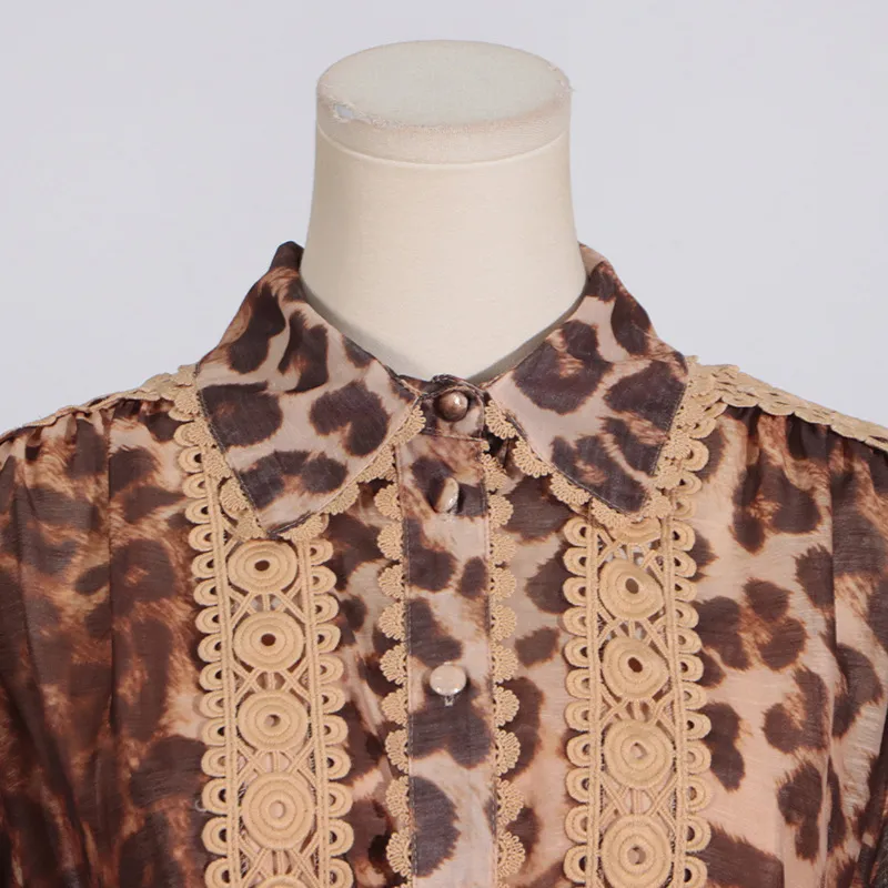 Long Sleeve Hollow Leopard Print Dress Women