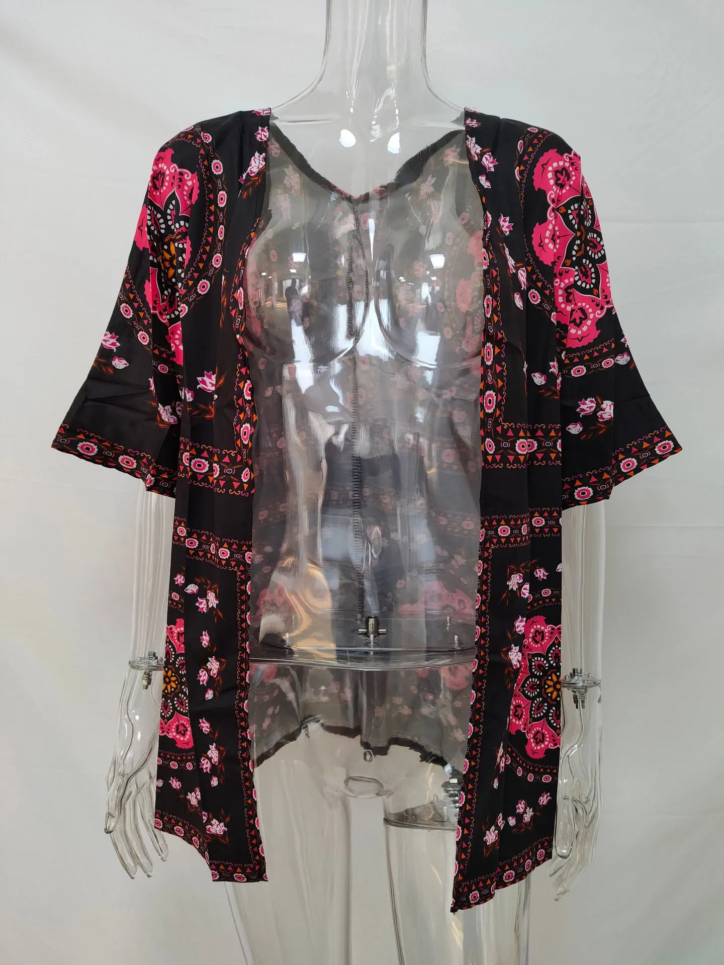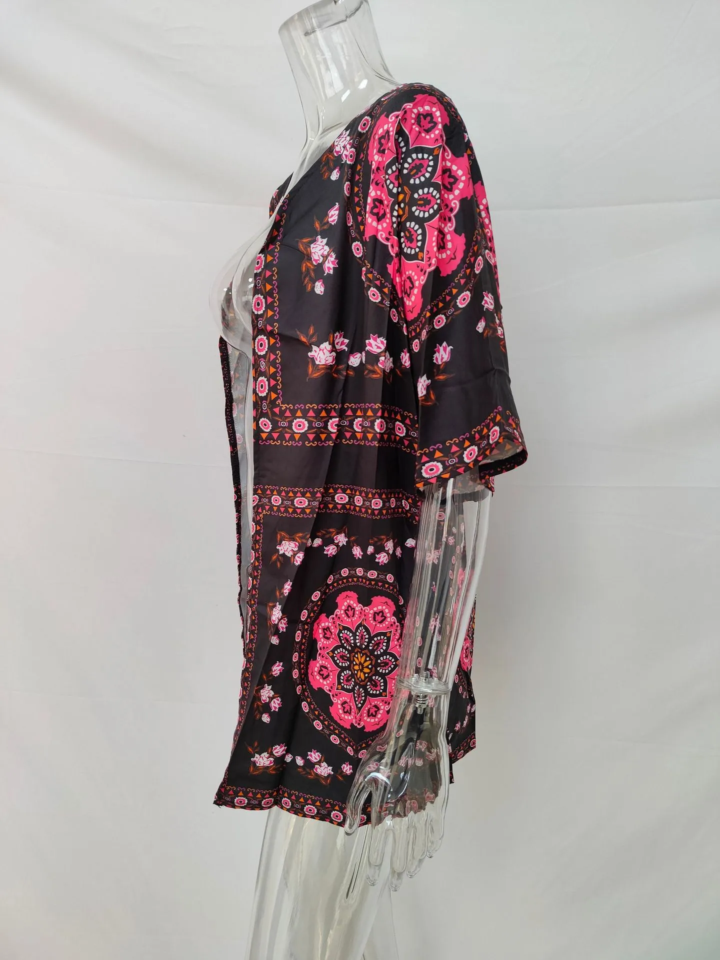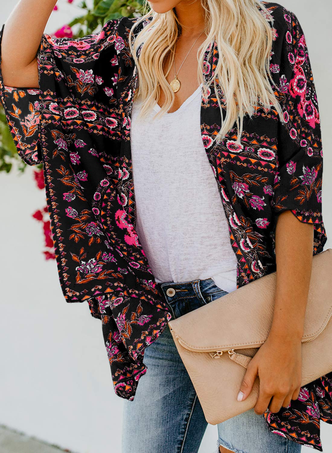 Flattering Fit: The kimono’s flowing sleeves and loose fit create a relaxed yet chic look, flattering various body types