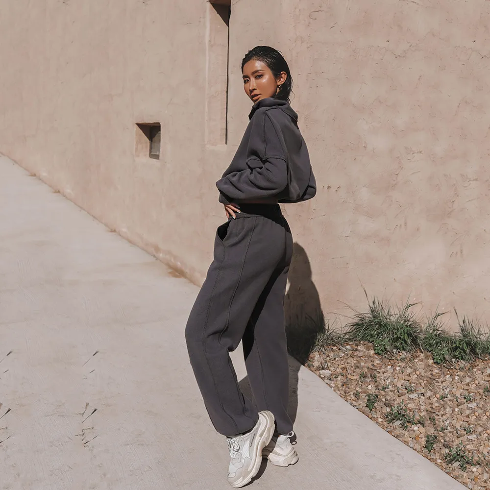 Elevate your wardrobe with our Long Sleeve Turtleneck Sweatshirt Stand Up Zipper Short Top paired with Loose Straight Leg Pants—a perfect combination of modern style and ultimate comfort.