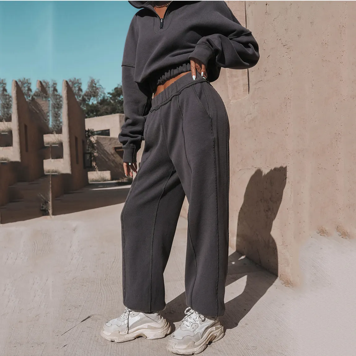 This set is perfect for layering during cooler months or wearing as a standalone outfit. The neutral color options make it easy to mix and match with other wardrobe staples. Pair it with your favorite sneakers for a laid-back look, or dress it up with boots and accessories for a more polished appearance.