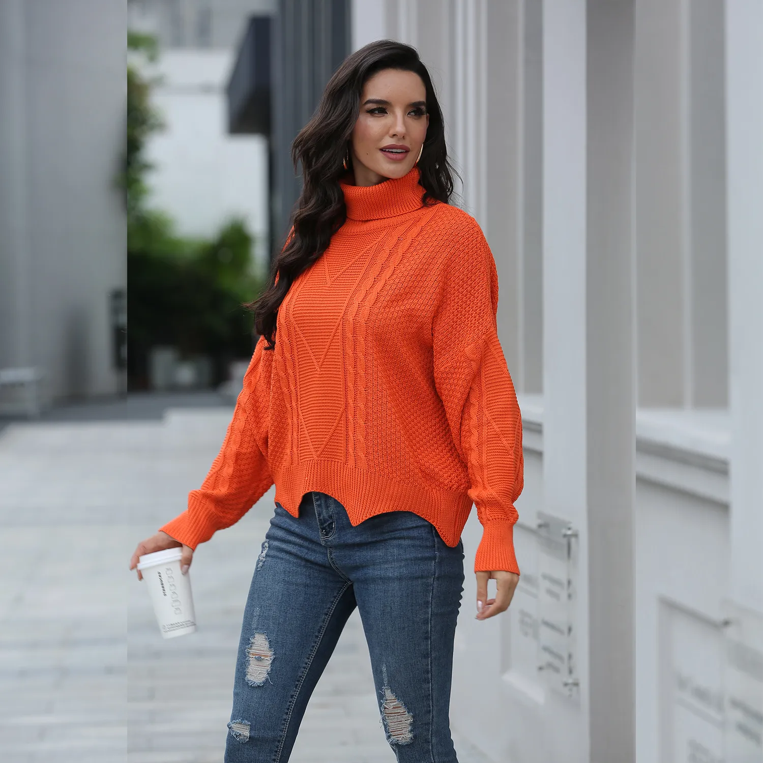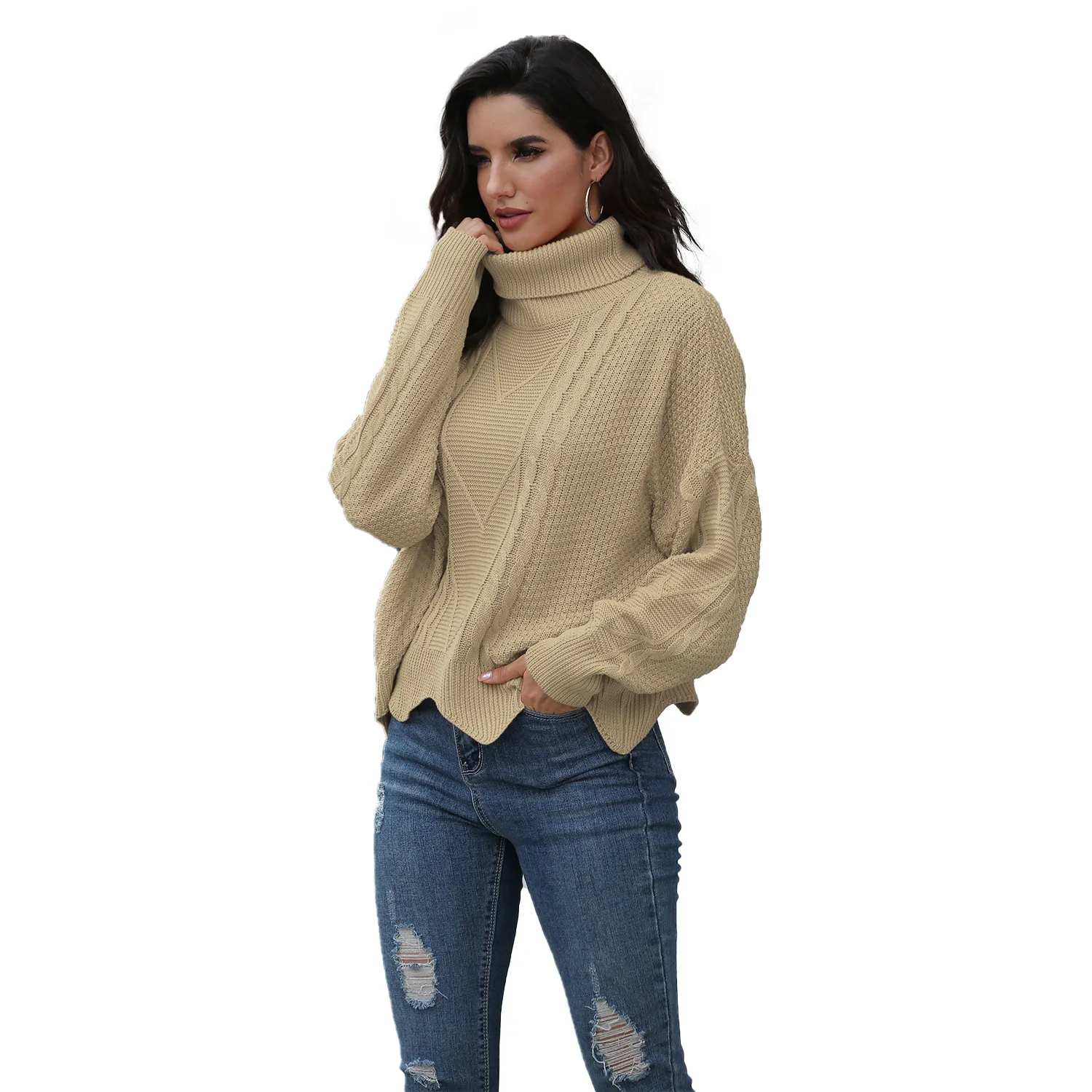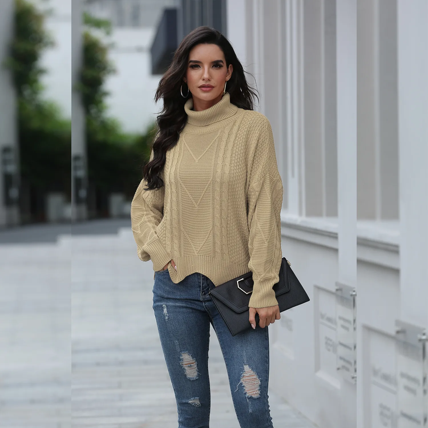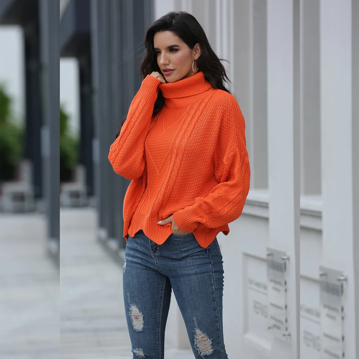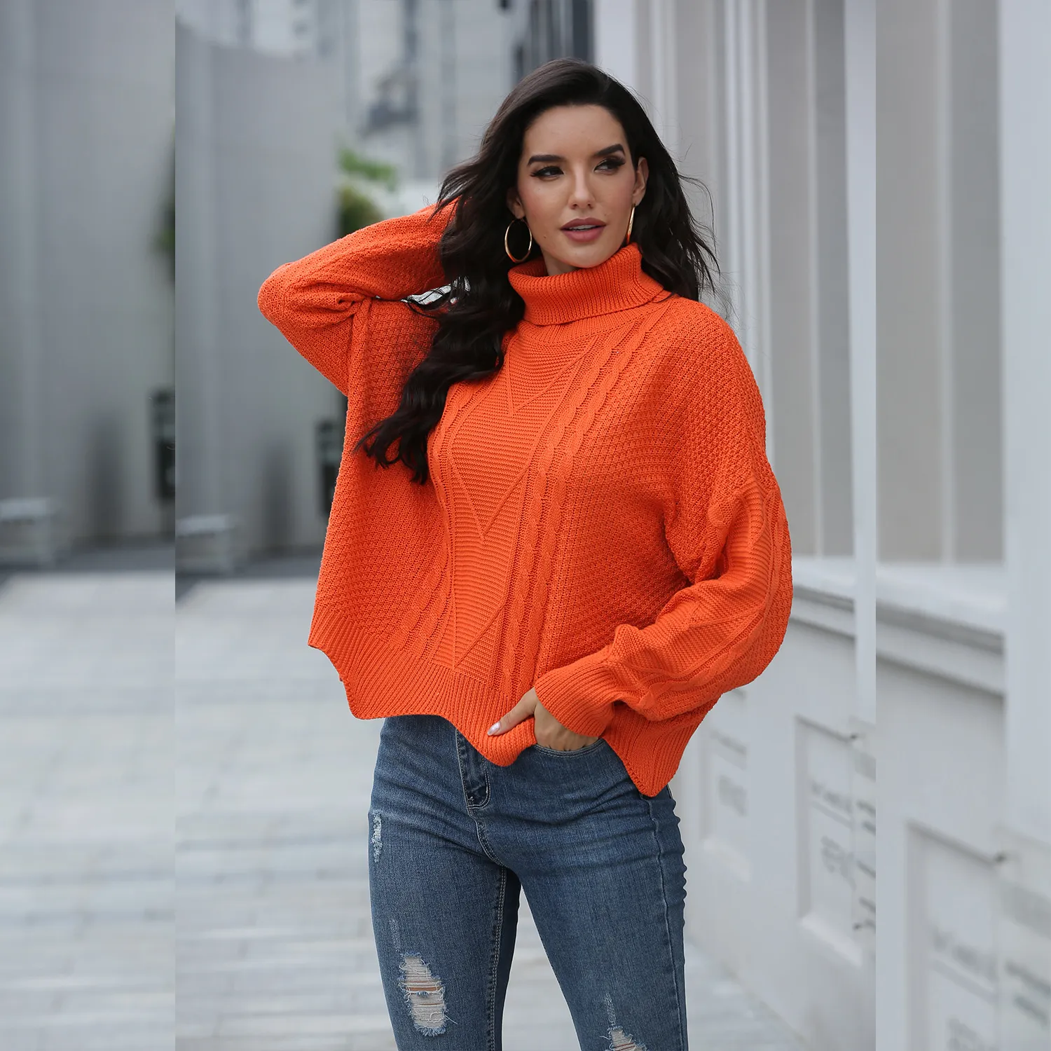 Loose solid color sweater women winter