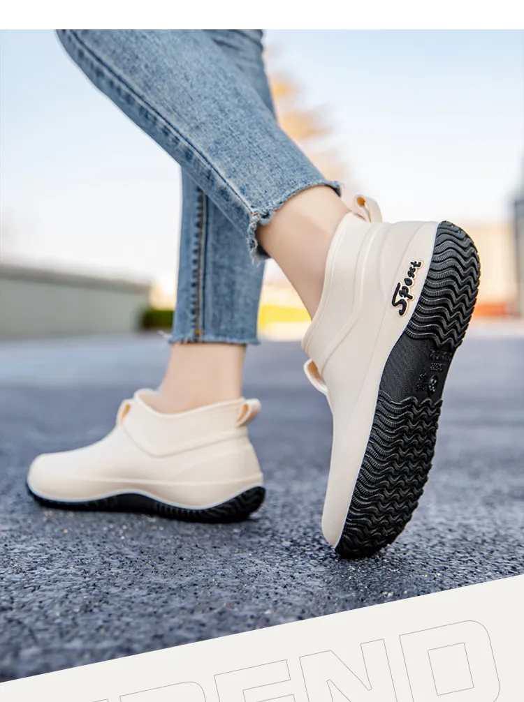 Made from premium waterproof material, these boots keep your feet dry in heavy rain, muddy paths, and shallow streams. Their low-top design provides lightweight flexibility, making them easy to wear for extended periods without the bulk of traditional high rain boots.