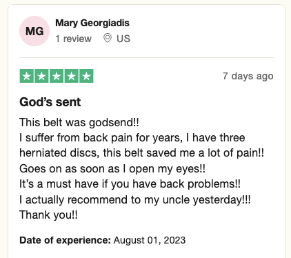 Eliminated their sciatica after 2 weeks of consistent use (wearing the belt for 2 hours/day avg.)