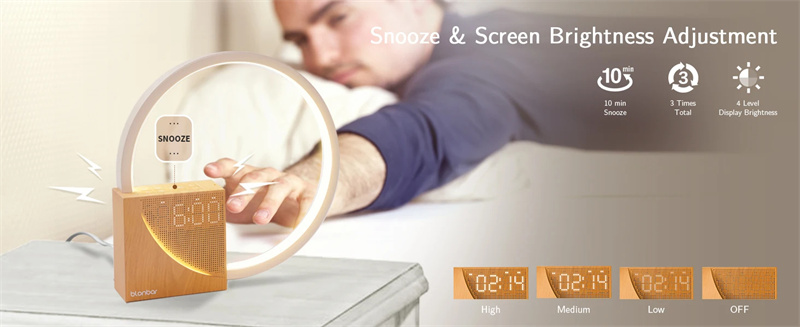 Wake-Up Alarm Clock:Â The wake-up light turns on 10 minutes before the set alarm time. You can also press the Snooze button, and get an extra 10 minutes of sleep. Up to 3 times snooze which brings convenience to your life.