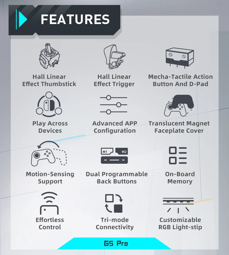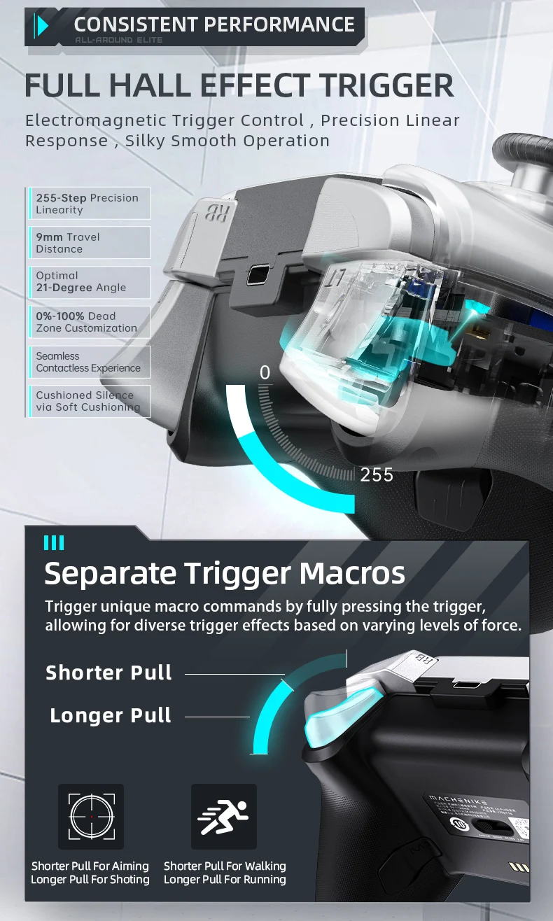 • Hall-Linear Trigger Button :The Hall-Linear Trigger Button provides quick and accurate response, allowing you to dominate the game with ease.