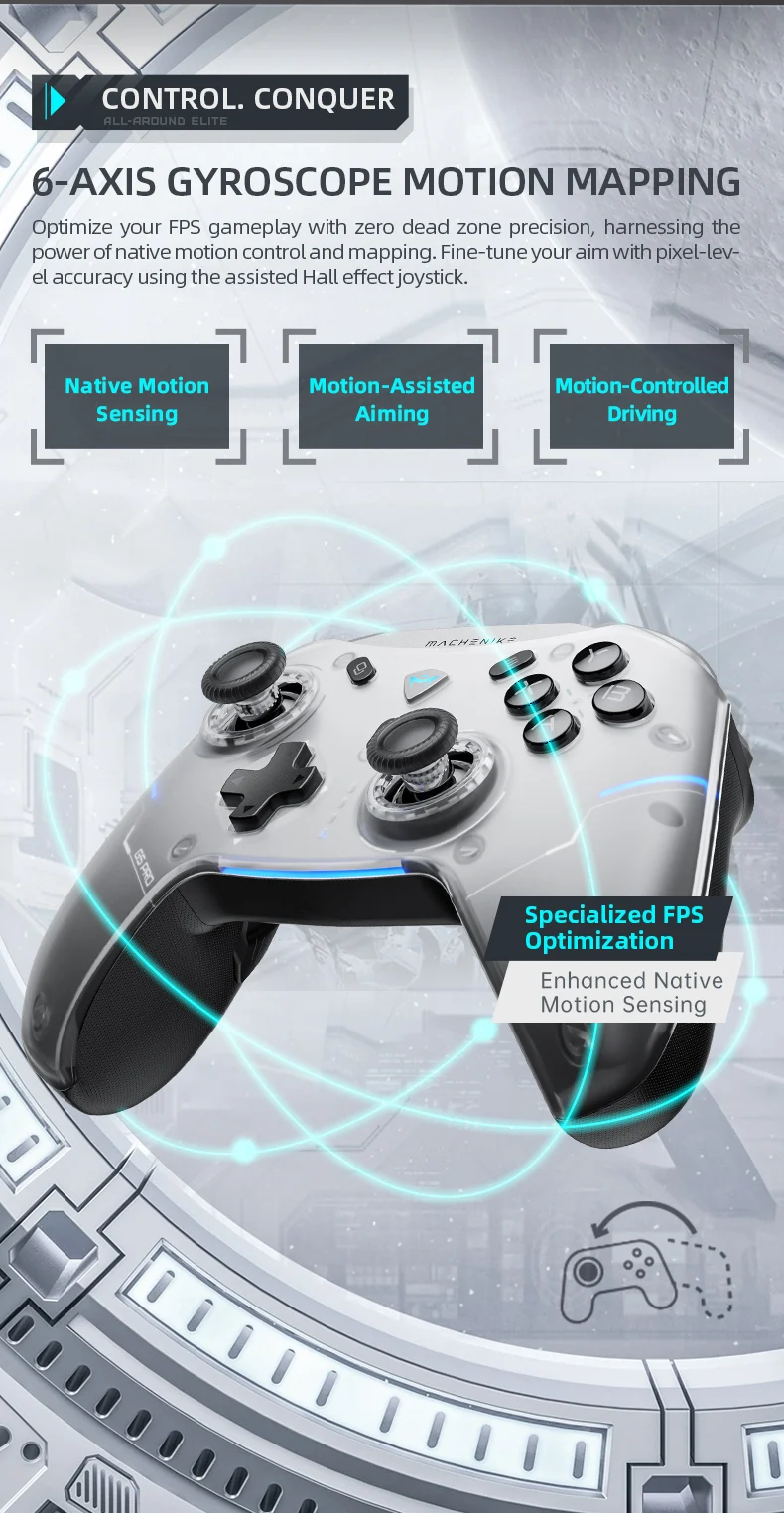 Optimize your FPS gameplay with zero dead zone precision, harnessing the power of native motion control and mapping. Fine-tune your aim with pixel-level accuracy using the assisted Hall effect joystick.