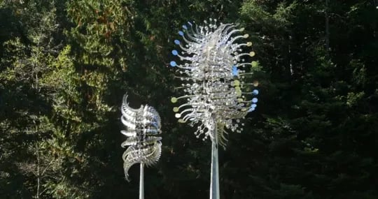 spin even in the slightest breeze. Sixteen balanced wings rotate in the wind around a circular axle. Maximum recommended wind
