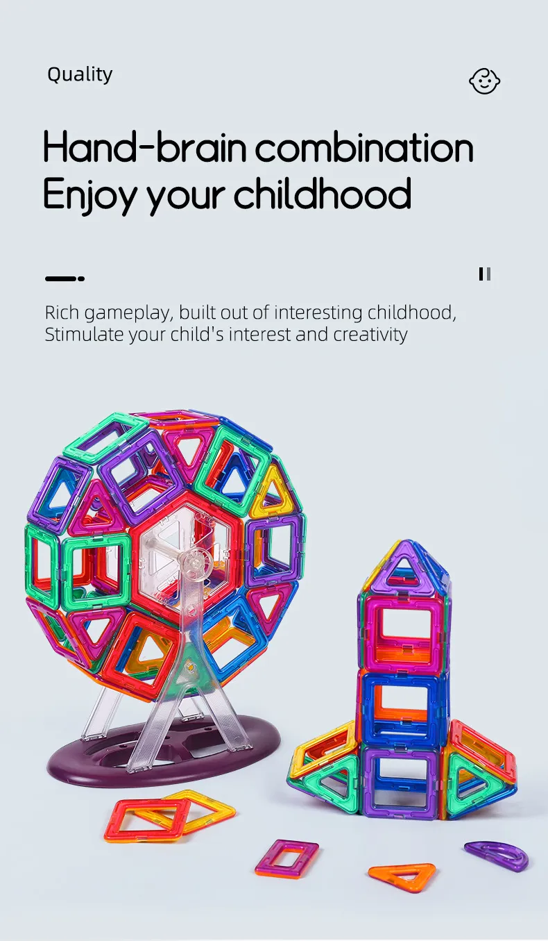 Magnetic blocks are versatile enough to appeal to children of different ages. For younger children, the large, brightly colored blocks are perfect for simple stacking and basic shapes. As children grow older and develop more complex cognitive skills, they can use the blocks to build more intricate designs and structures. This adaptability makes magnetic blocks an excellent investment that will grow with your child and continue to engage them as they learn and develop.