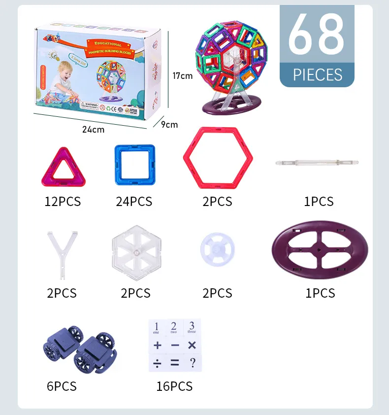 Magnetic Building Blocks Classic Toys offer an exciting, engaging, and educational experience that sparks creativity and fosters learning. Designed for children of all ages, these magnetic blocks make building fun, safe, and easy. With their powerful magnets and a variety of shapes, sizes, and colors, these blocks are the perfect tool to unlock your child's imagination while teaching them valuable skills in STEM (Science, Technology, Engineering, and Mathematics). Whether your child is creating geometric shapes, complex structures, or abstract designs, these toys provide endless possibilities for play, learning, and growth.