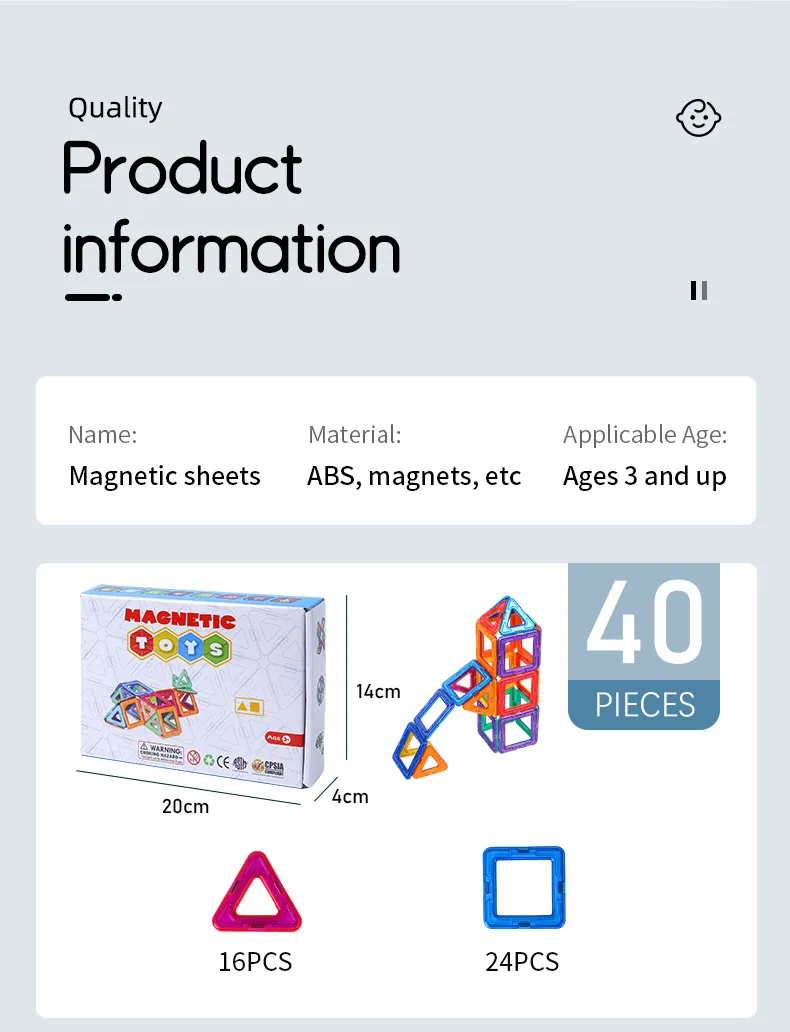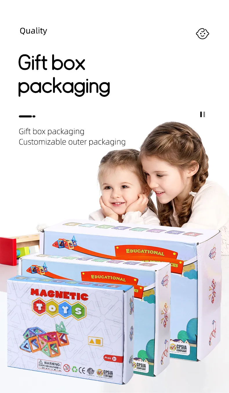 With a variety of geometric shapes and vibrant colors, these magnetic building blocks encourage children to think creatively and explore different designs. From simple shapes like squares and triangles to more complex structures, these blocks inspire imaginative play. Children can create anything they can dream up, whether it’s a car, house, spaceship, or abstract art.