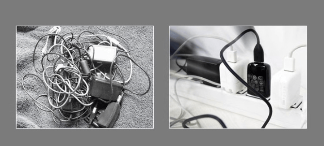 Copstop Cord Organizer could hold the wires in place,make them off the floor and hide from sight,keeping cables hidden & close at hand instead of being in the way.Sort the cords to have a neat mood