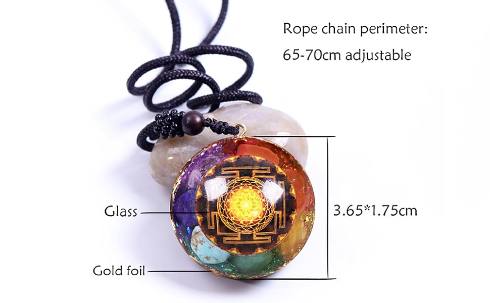 Orgonite Pendant is Sealed in Resin with Copper Energy Symbol and Natural Crystal 7 Chakra Stones by Handmade Best Artisian.So that the pendant will not hold negative energy.Adjustable Cord Necklace Allows You to Position Your Orgone Pendant over the Heart or the Throat for Optimal Protection.