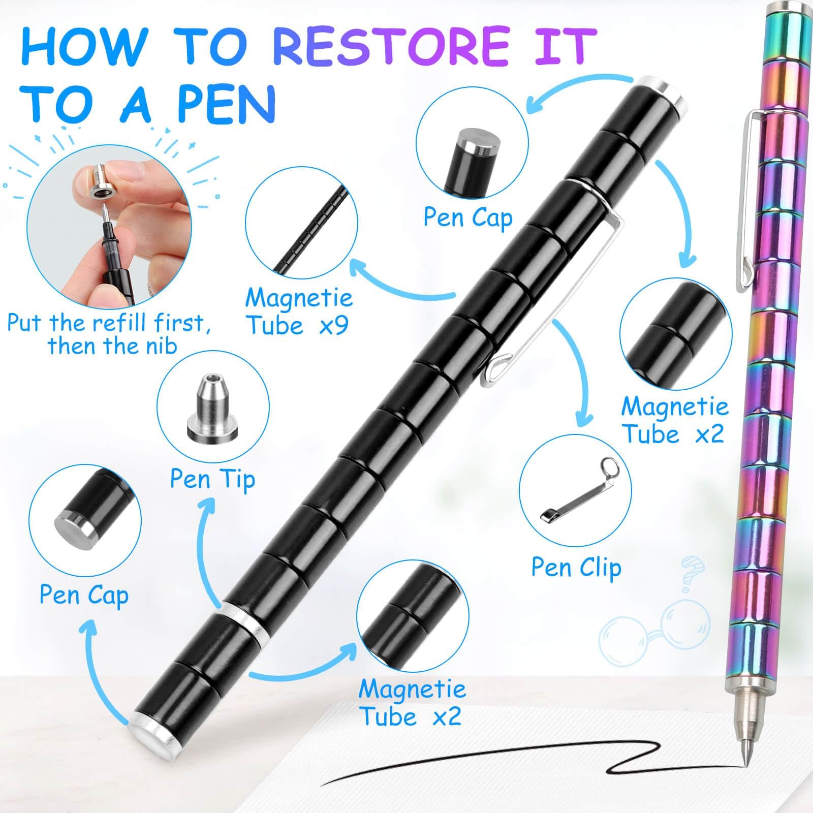 - 【Multifunction Writing Instruments】This magnetic pen is not just a pen, also be a finger fidget toys for kids&adults. It can be rotated and transformed into a variety of creative, free combinations, multiple and diverse plays.