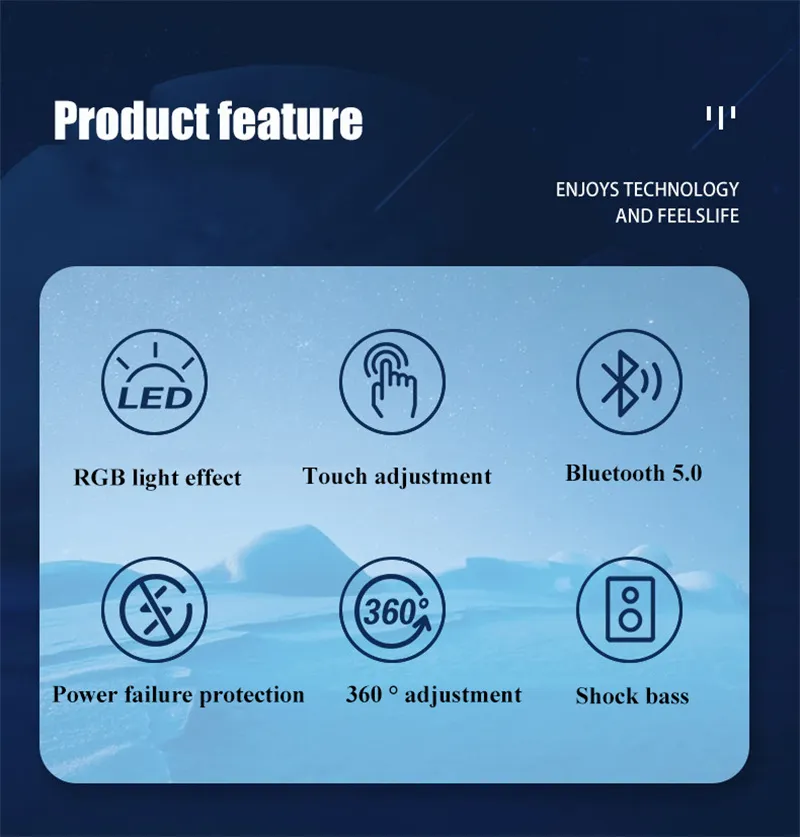 Function: LED light, TWS duplex, Bluetooth, clock FM, TF card, USB, AUX