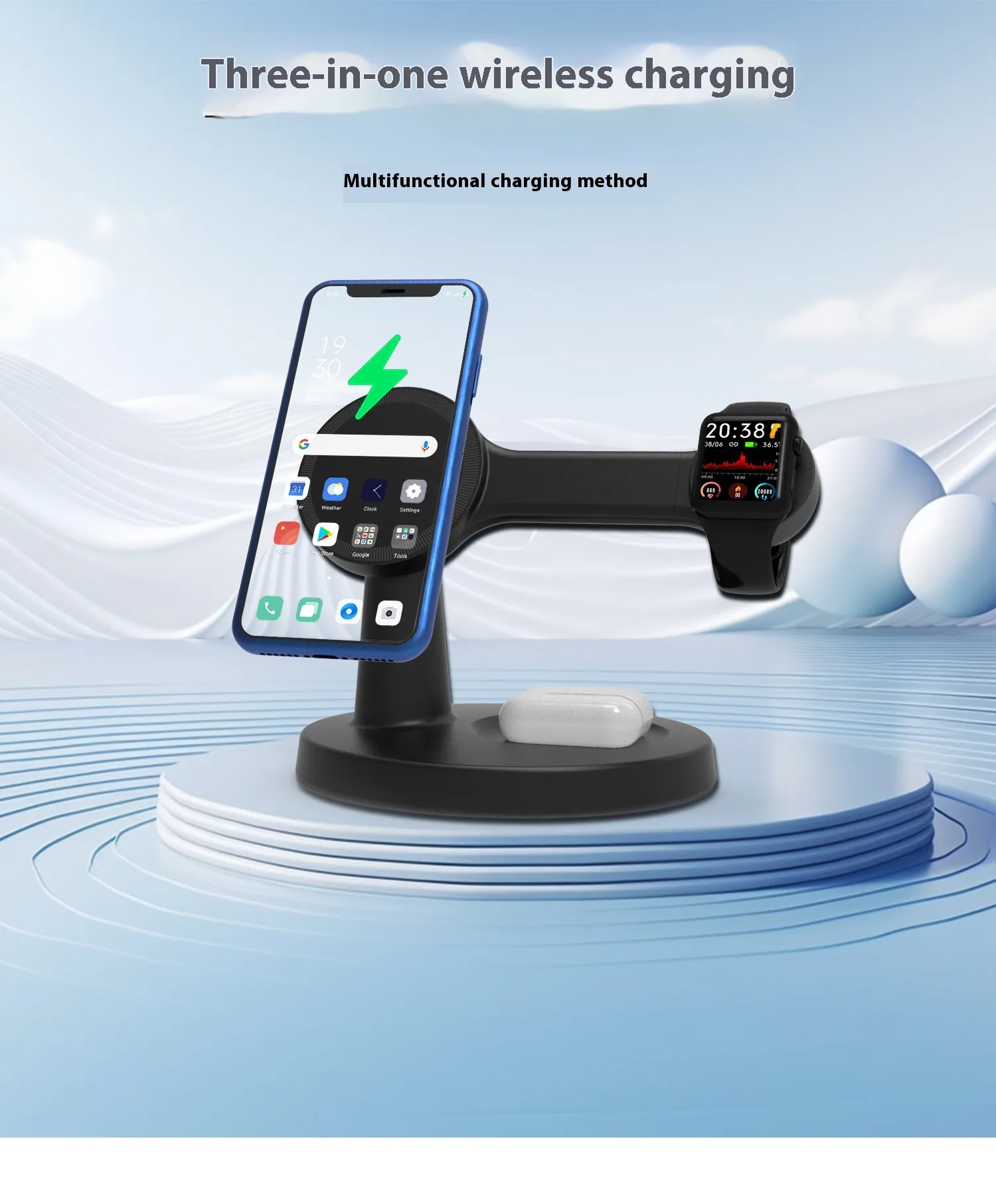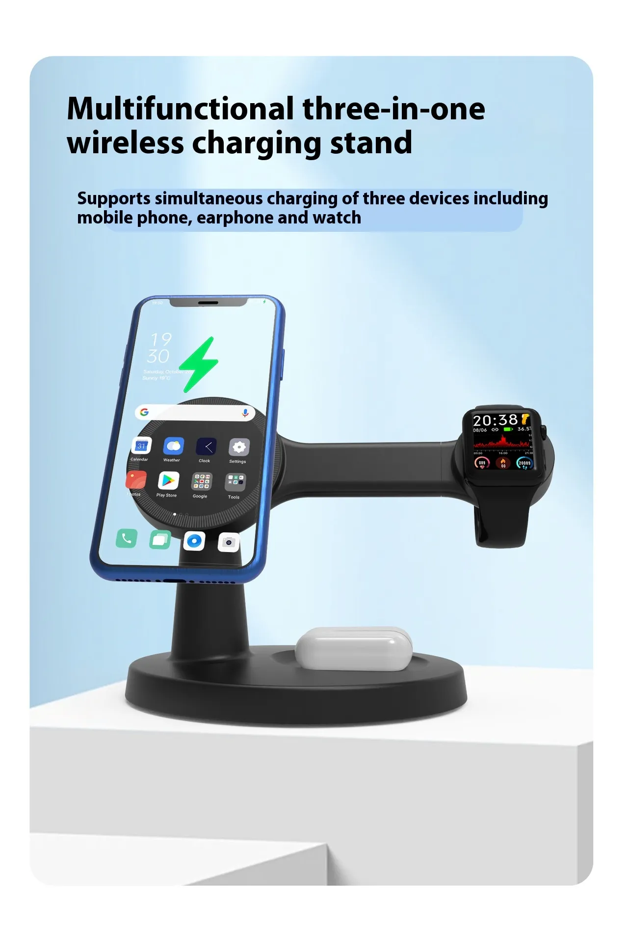 - 3-in-1 charging for phone, watch & earbuds