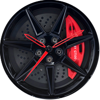 This automotive-inspired aesthetic captures the power of motorsport. Highly durable scratch-resistant round sapphire crystal, eye-catching decorations include calipers, multi-spoke design wheels and slotted discs.