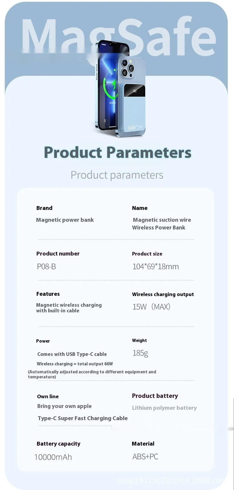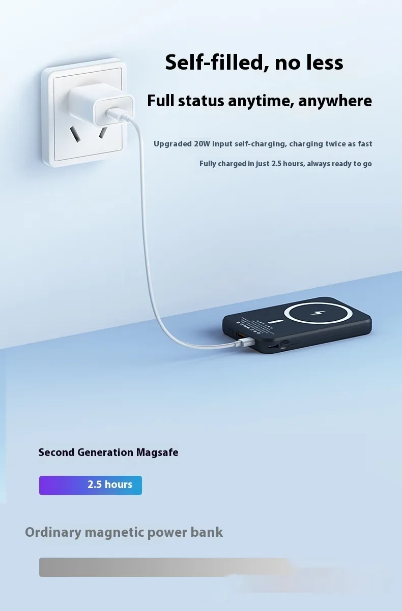 Experience cutting-edge charging technology with the Magsafe Magnetic Wireless Power Bank. Featuring 66W of super-fast charging power, this portable power bank allows you to charge your devices wirelessly with ease. The built-in Magsafe magnetic design ensures that your device stays securely in place, providing an efficient and stable charging experience. Whether you're at home, on the go, or traveling, this power bank offers seamless charging for your smartphone, tablet, and more.