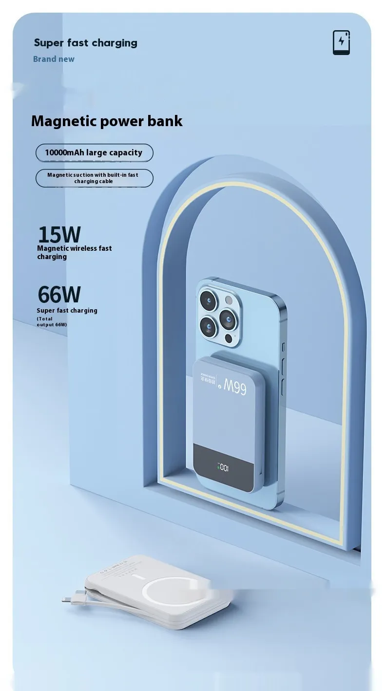 Magsafe Magnetic Wireless Power Bank – 66W Super Fast Charge with Cable