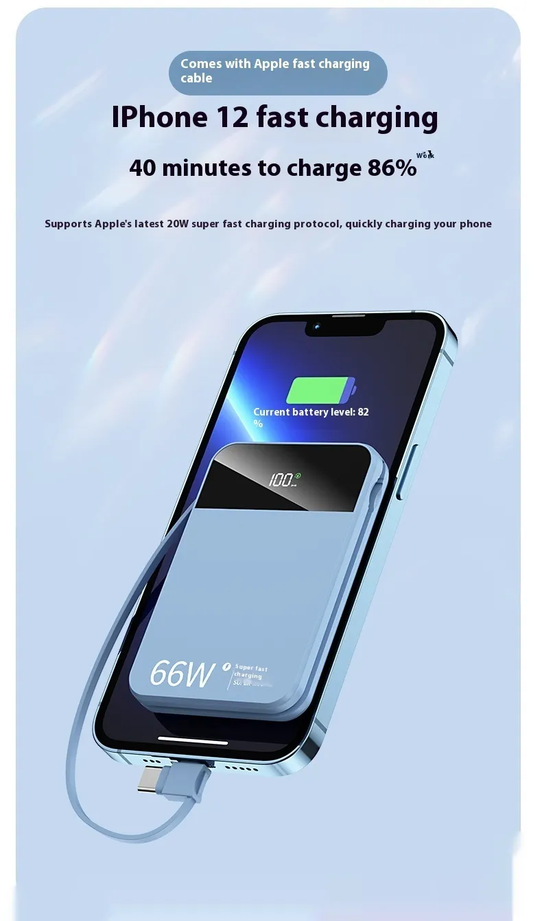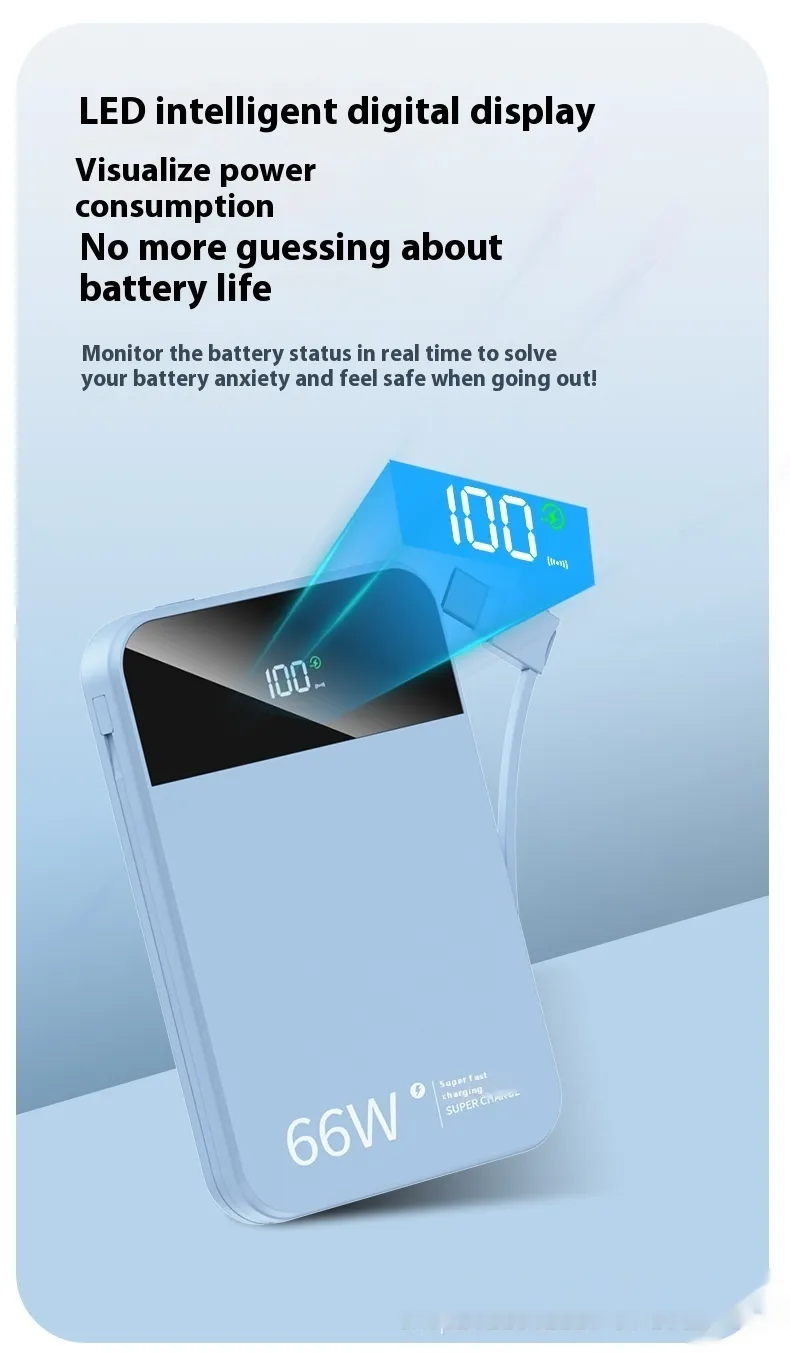 With a sleek, compact design, this power bank is perfect for users who need both power and portability. The 66W super-fast charging