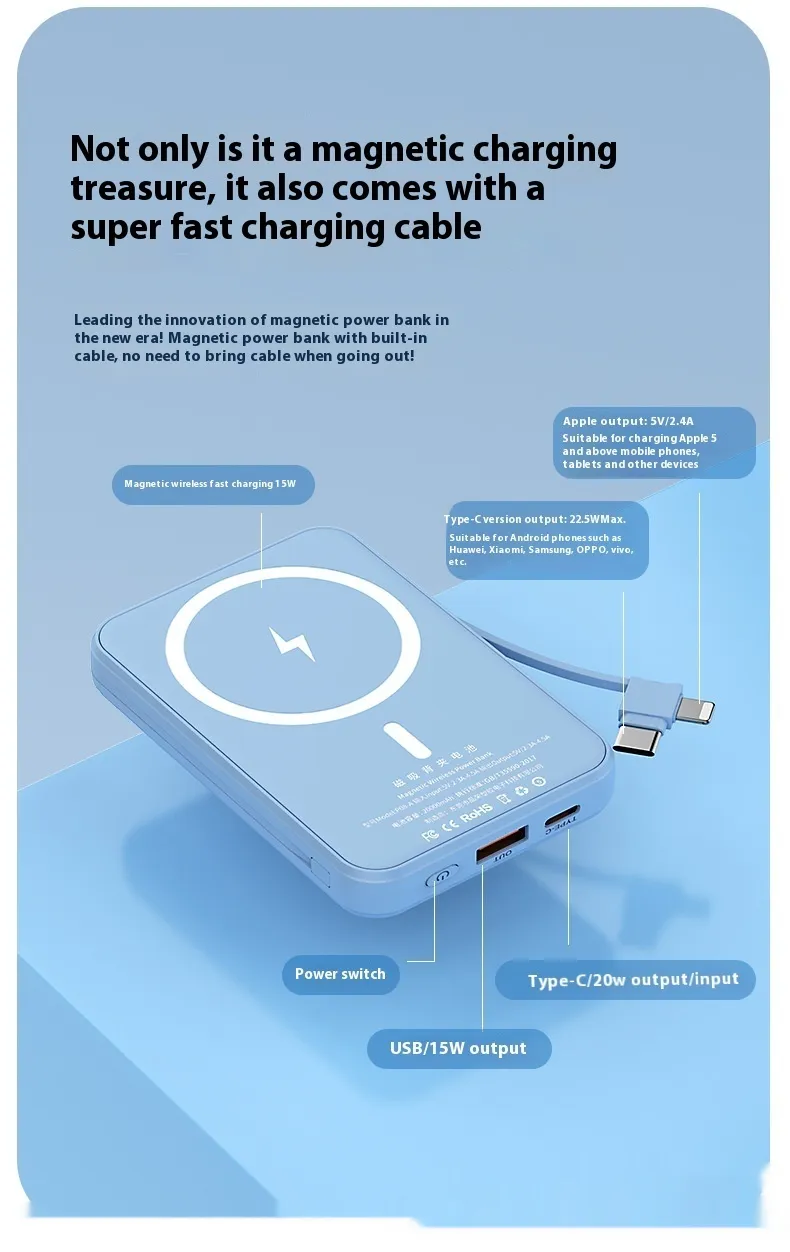ensures your devices charge quickly and efficiently, while the included cable provides an additional charging option. Its magnetic feature