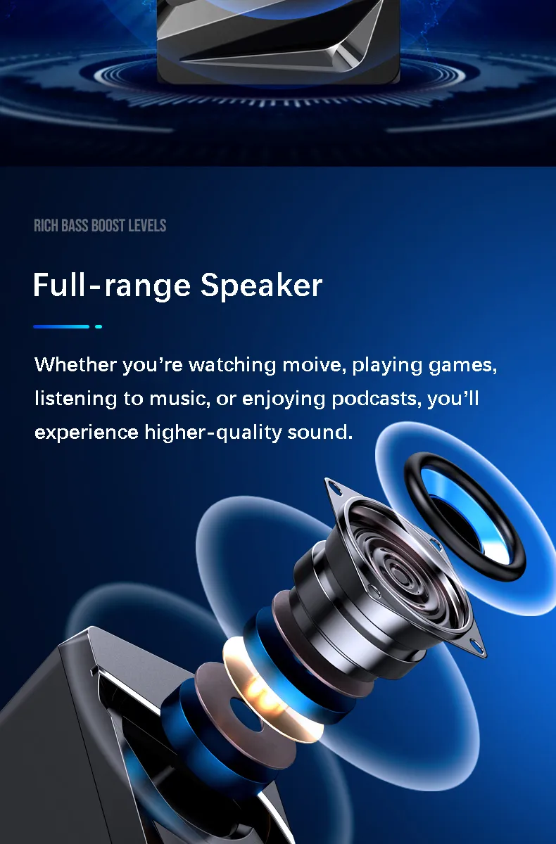 Despite their compact size, these sound bar speakers produce clear, rich sound that enhances your overall audio experience. Thanks to advanced audio drivers and built-in subwoofers, the speakers deliver a full range of sound—from deep bass to crisp highs. This makes them perfect for a wide variety of audio experiences, whether you’re gaming, listening to music, watching movies, or participating in video calls. Enjoy clear dialogues, deep bass, and full-range sound without distortion, even at high volumes.