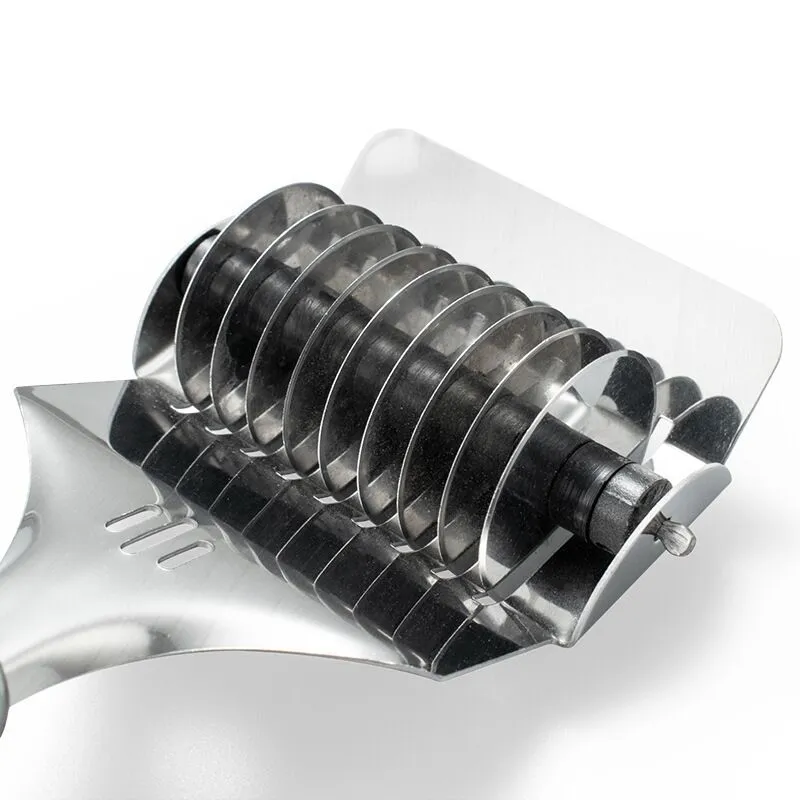 Noodle Cutter Roller Size: Total Length: 8.7 inch; Wide:2.83 inch; Width between blades:0.20inch, the noodle grid roller is driven side by side with 9 pieces, you can easily make neat noodles.