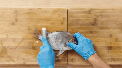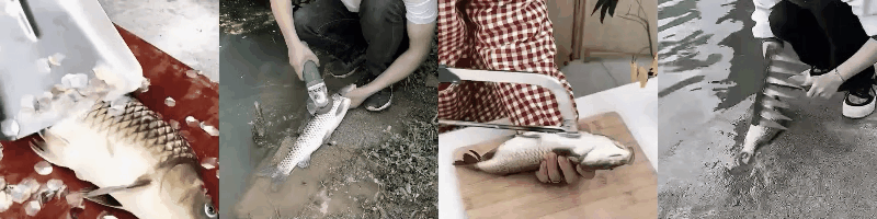 Scraping scales, cutting meat, gutting,